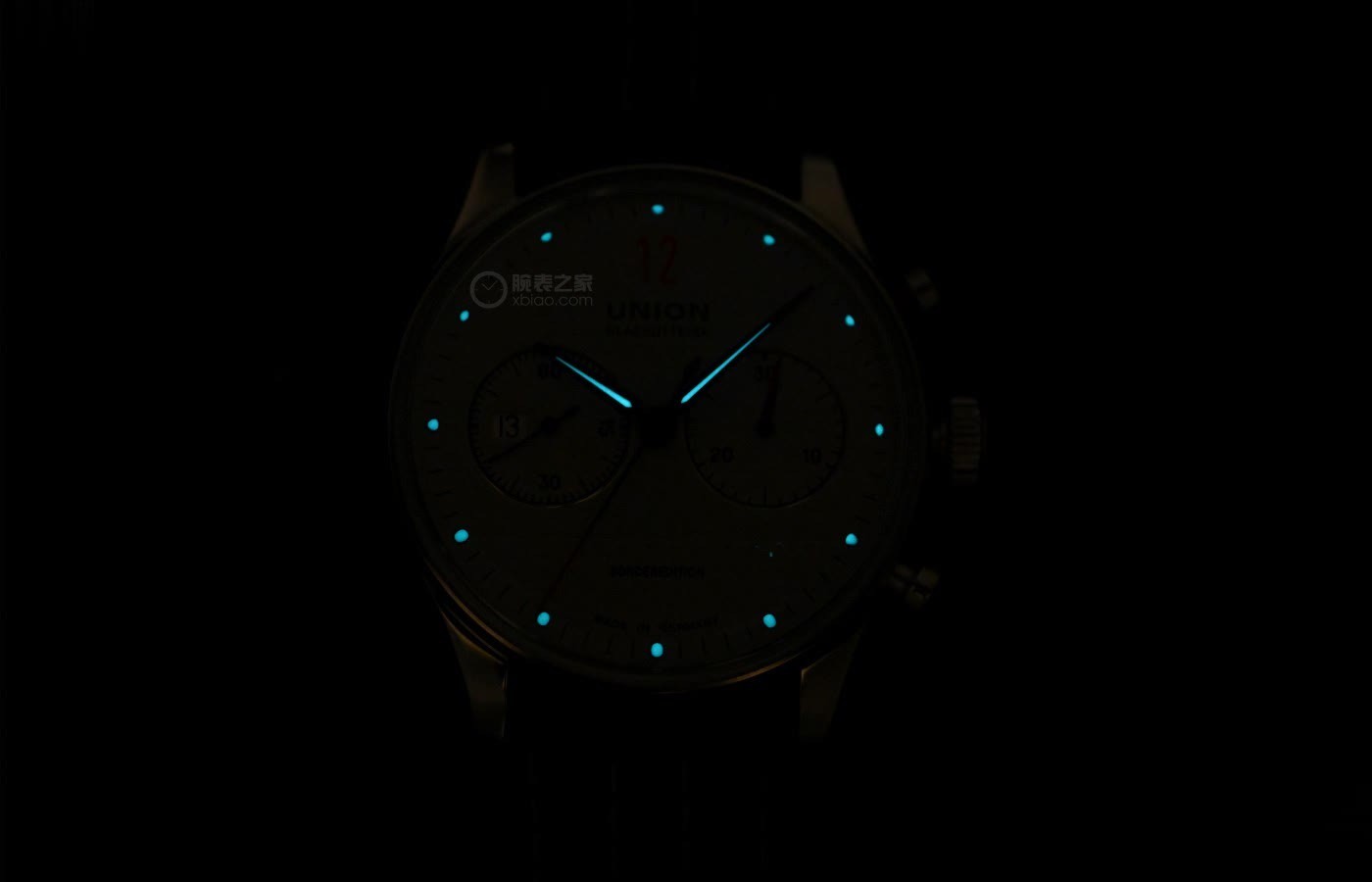 时针以及点状时标均覆有夜光涂层,在黑暗情况下也能够清晰看时。